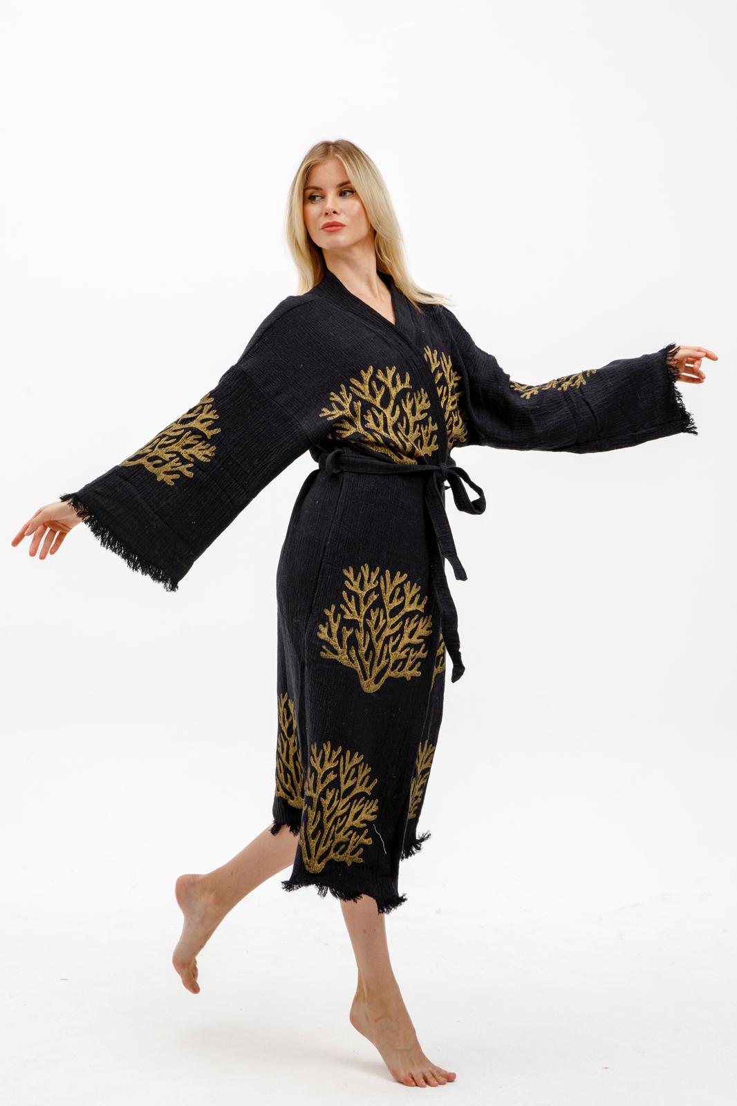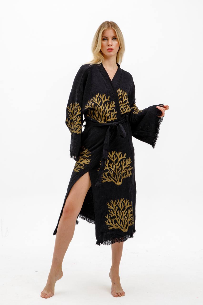 • Versatile Design: With its elegant silhouette and timeless appeal, this robe is perfect for both lounging and stepping out in style.