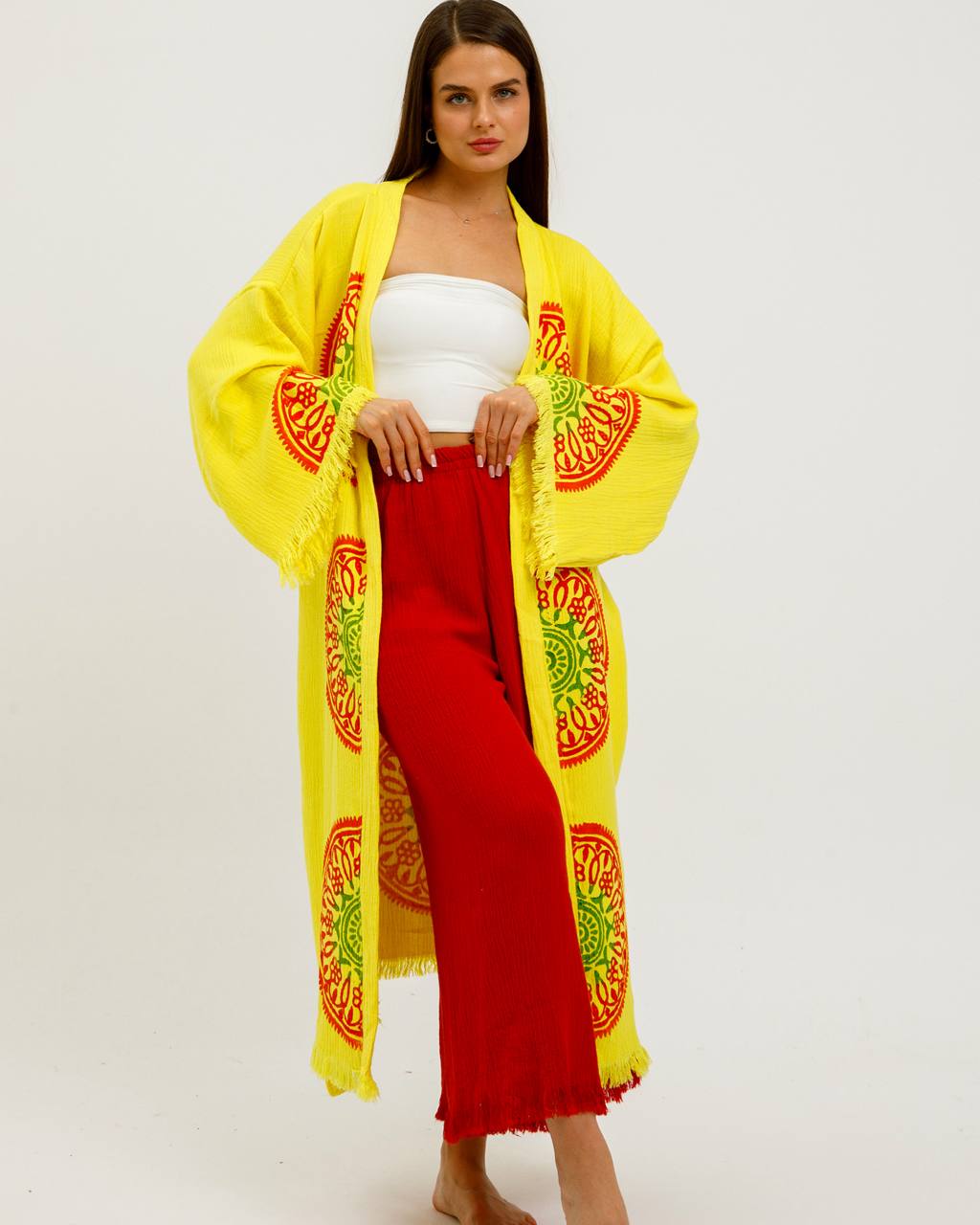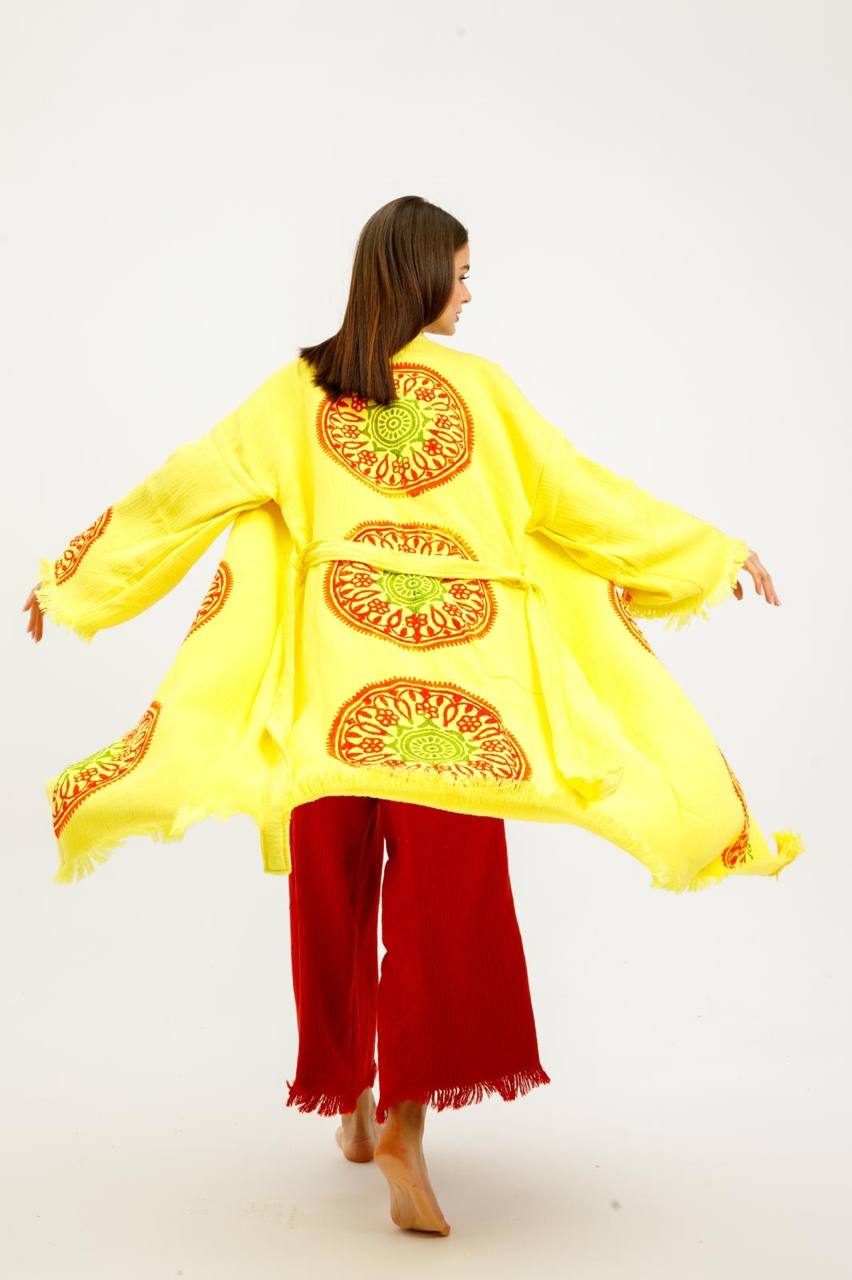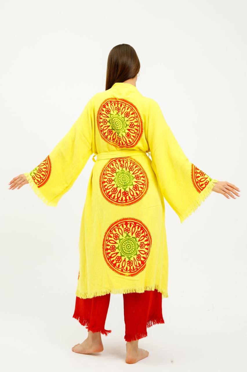 Introducing our stunning robe made from 100% organic cotton, featuring a unique hand-printed design on the back. The print symbolizes harmony and vitality, reflecting the interconnectedness of nature and life. Each robe is crafted with care, ensuring both comfort and sustainability.