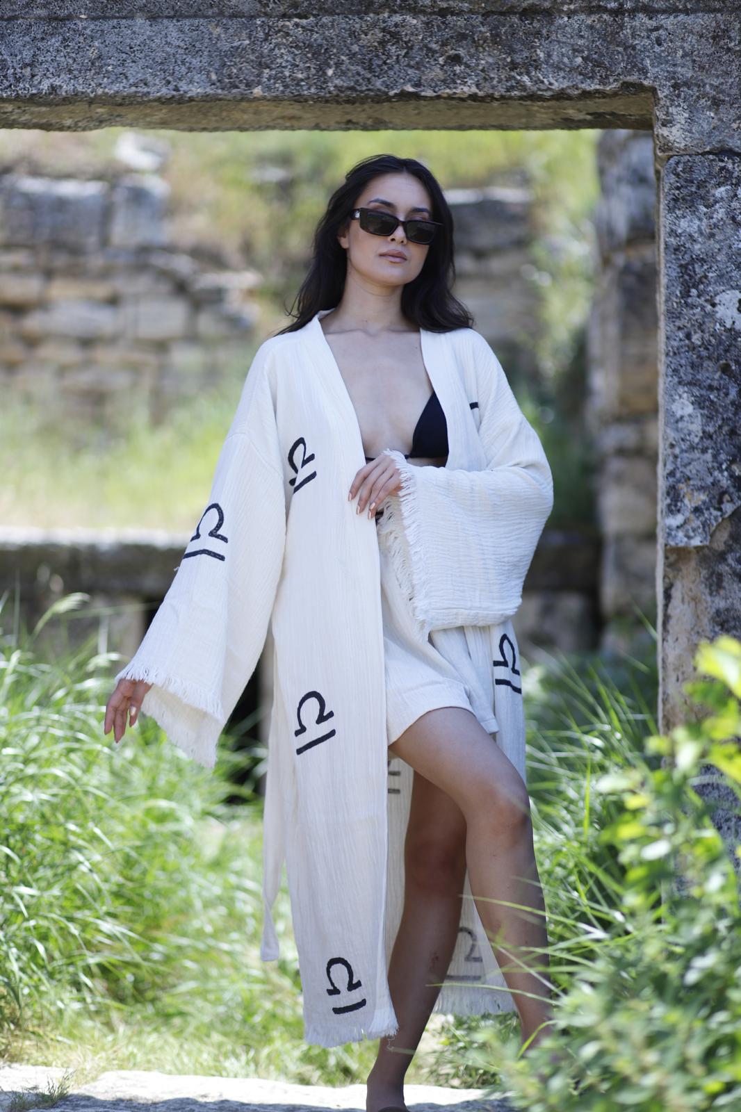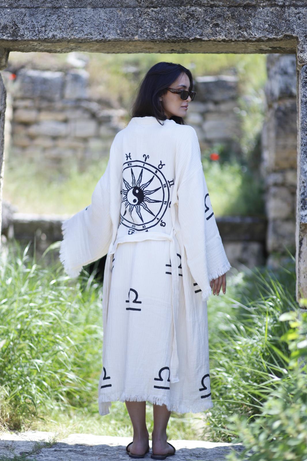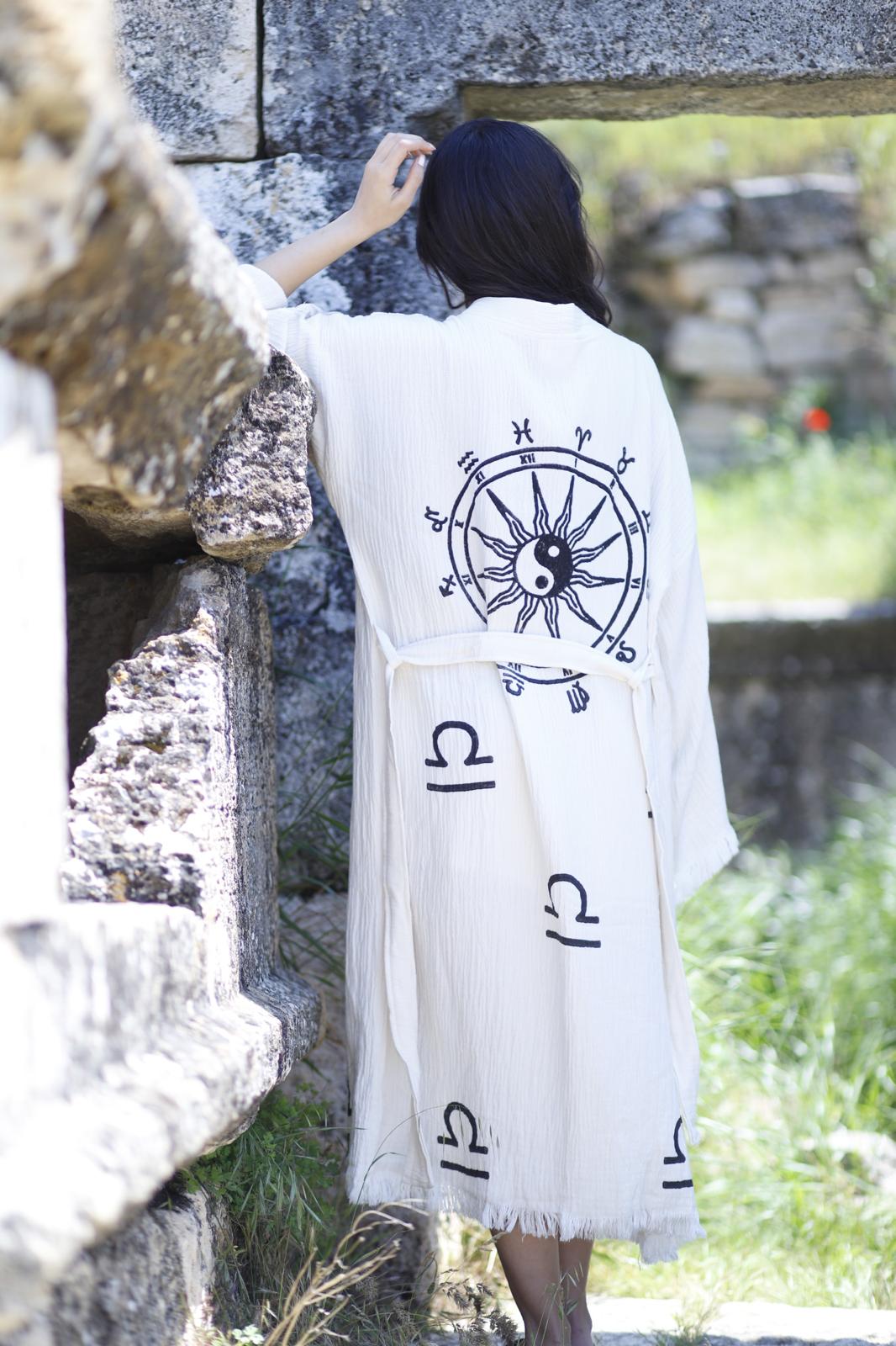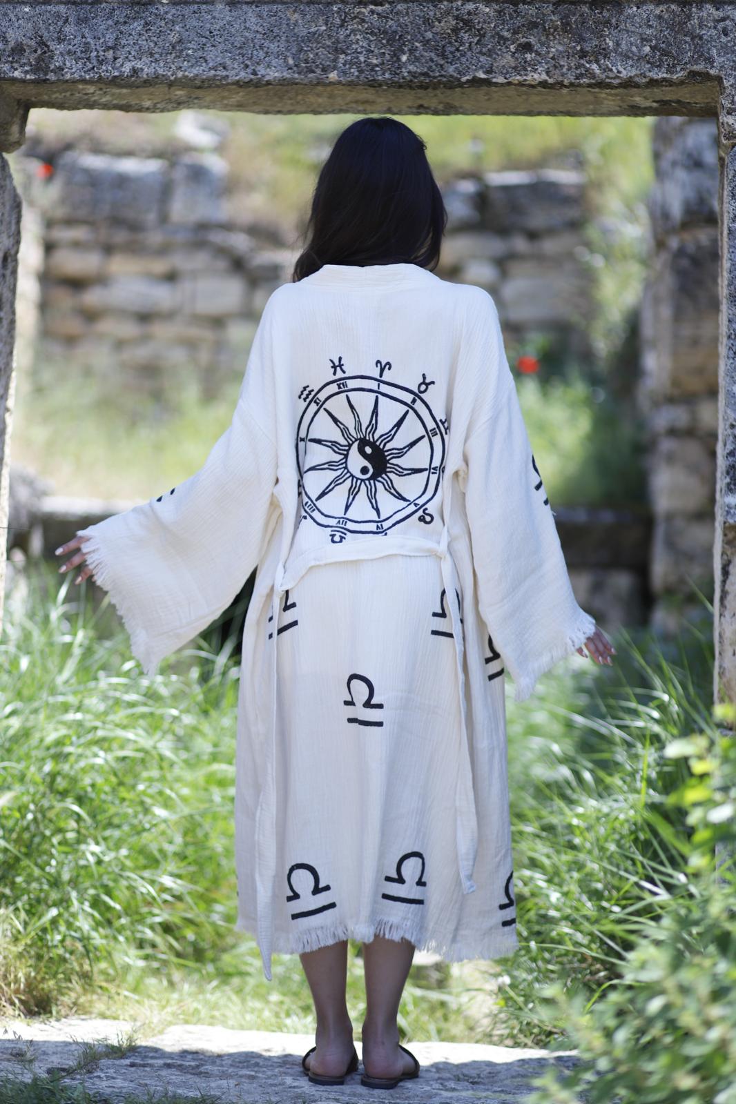 A standout feature of this piece is the hand-printed design on the back. This unique back print The Yin-Yang symbol represents the interdependence and interaction of two opposing forces. The dark (Yin) and light (Yang) halves of the symbol illustrate how these forces complement each other and contain a part of the other within themselves. This signifies balance, harmony, and how everything comes together as a whole. Yin and Yang exist by supporting and balancing one another, reflecting the complexity of life and the cyclical nature of existence.